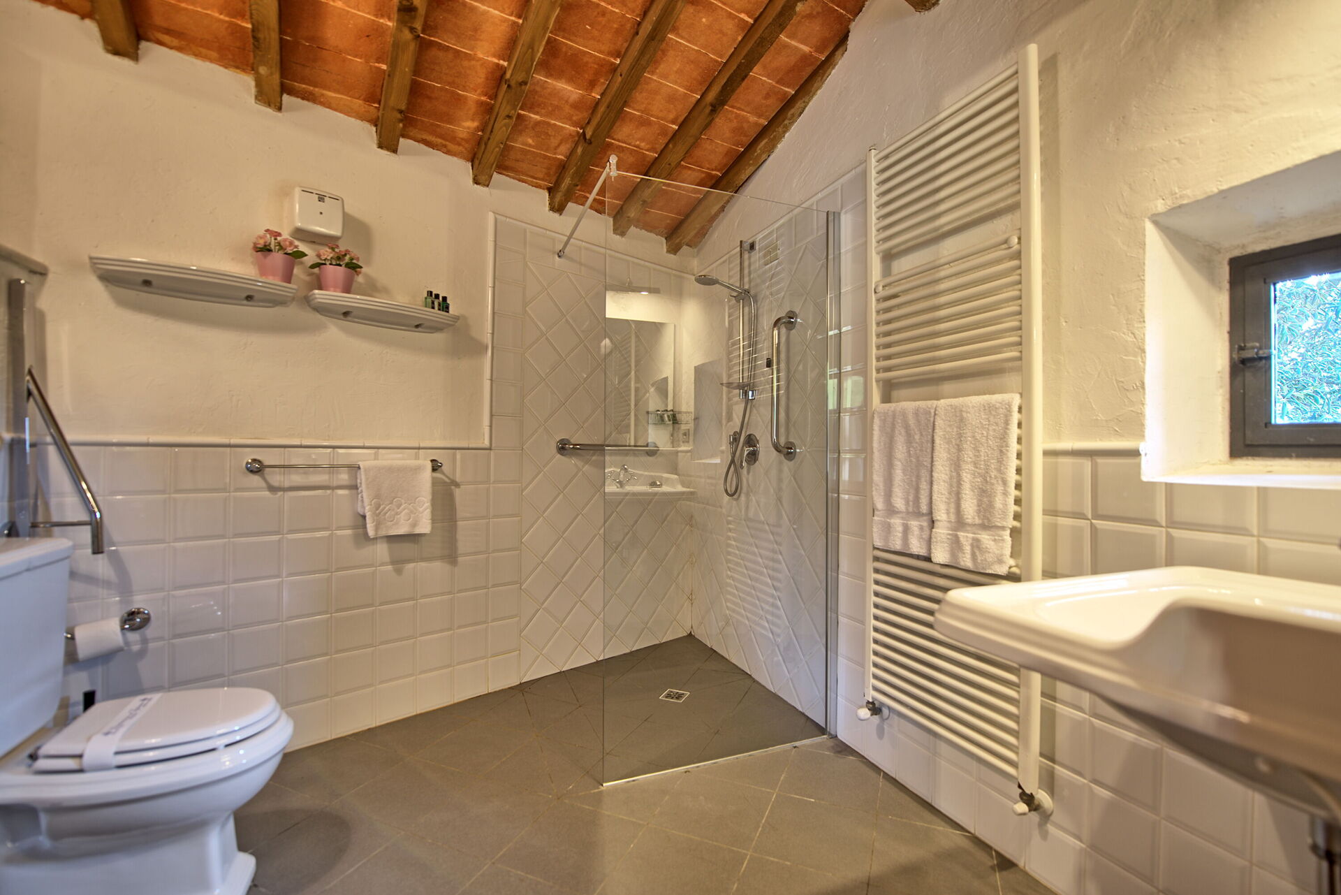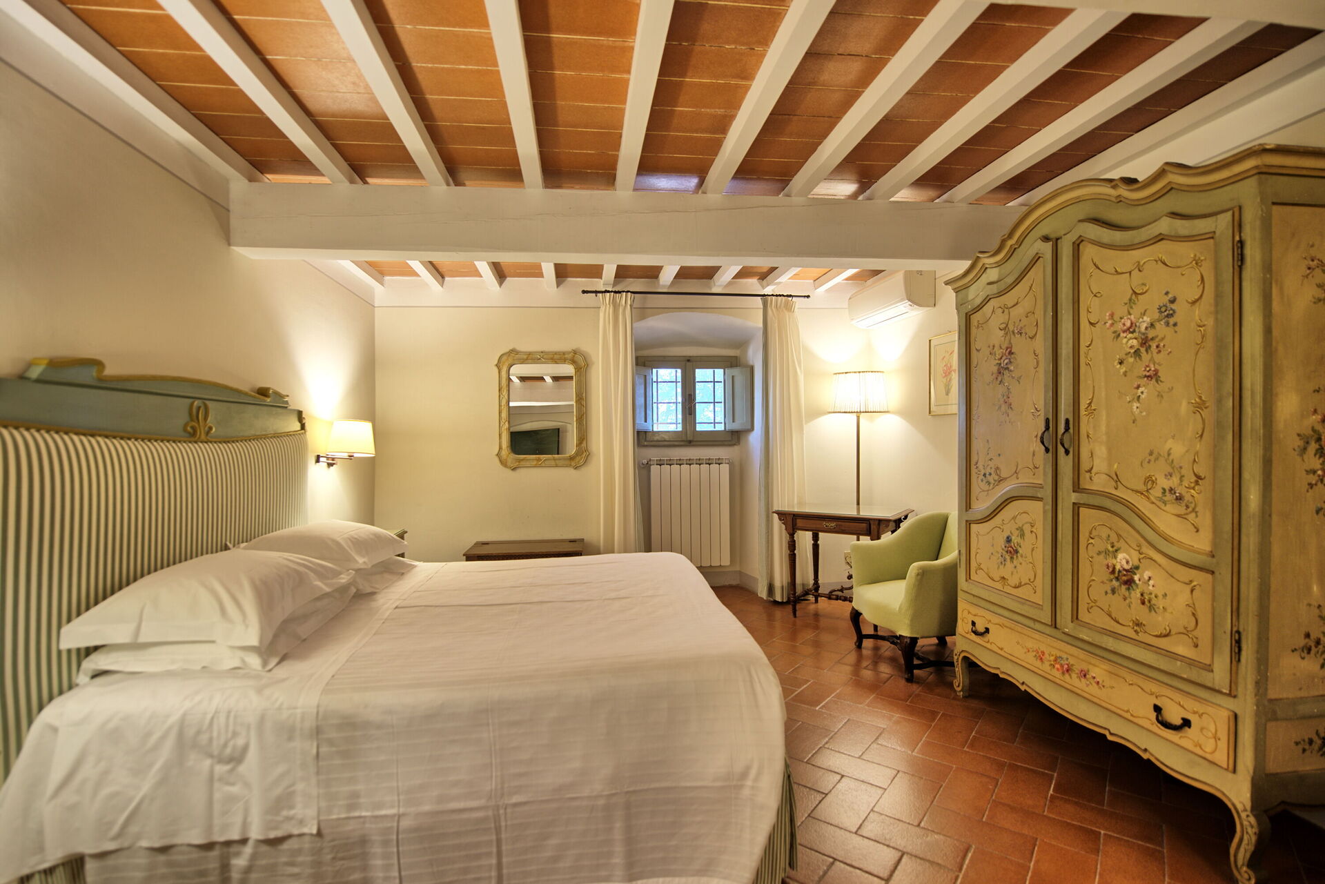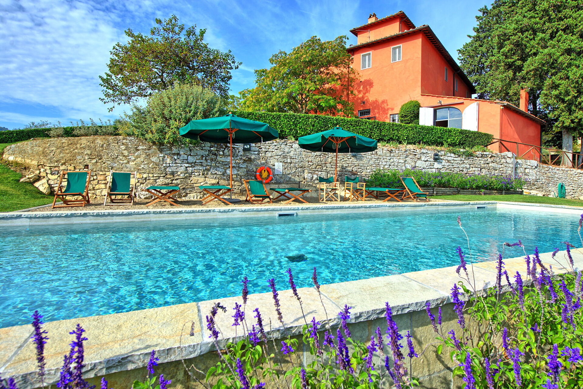 Comfortable villa on a renovated property dating back to the 1300s, just 15 km from Florence. It is part of a large farm with 200 hectares of vineyards and olive groves, that produces excellent wines and extra virgin olive oil.